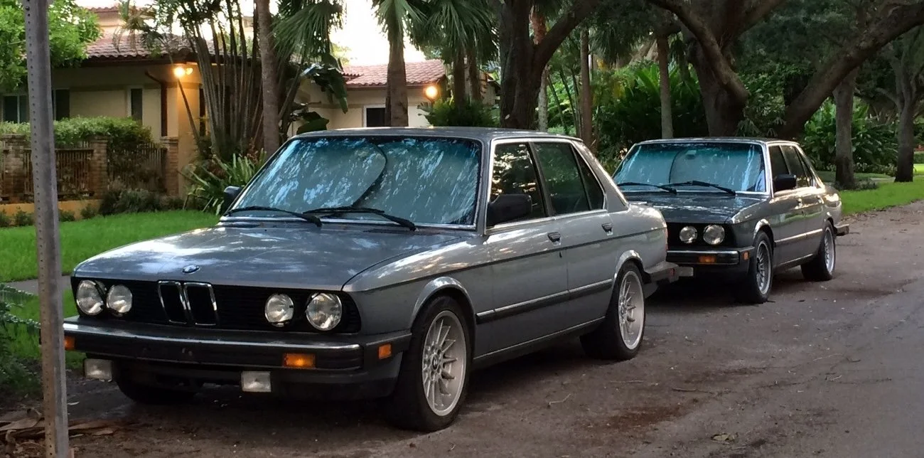 We both did, and on the same day. He purchased a Dolphin Grey 1986 535i, and I brought home a Cosmo Blau 1985 535i. His came to be known henceforth as Claus, and mine as Fritz.
