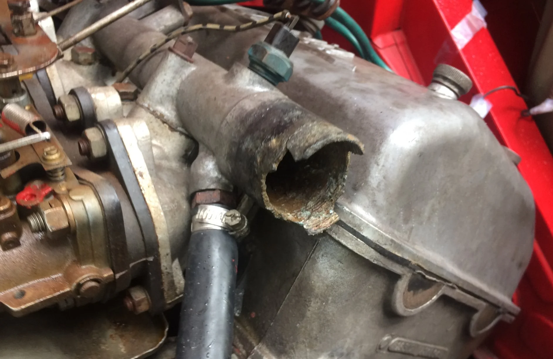 Fluid is a generous term. I firmly believe the prior owner – from Palermo where the Fulvia had lived its entire life– used San Pellegrino for coolant. This was clear – a silly word to use here – as the entire system had so much calcium deposits it could qualify as a mineral mine.